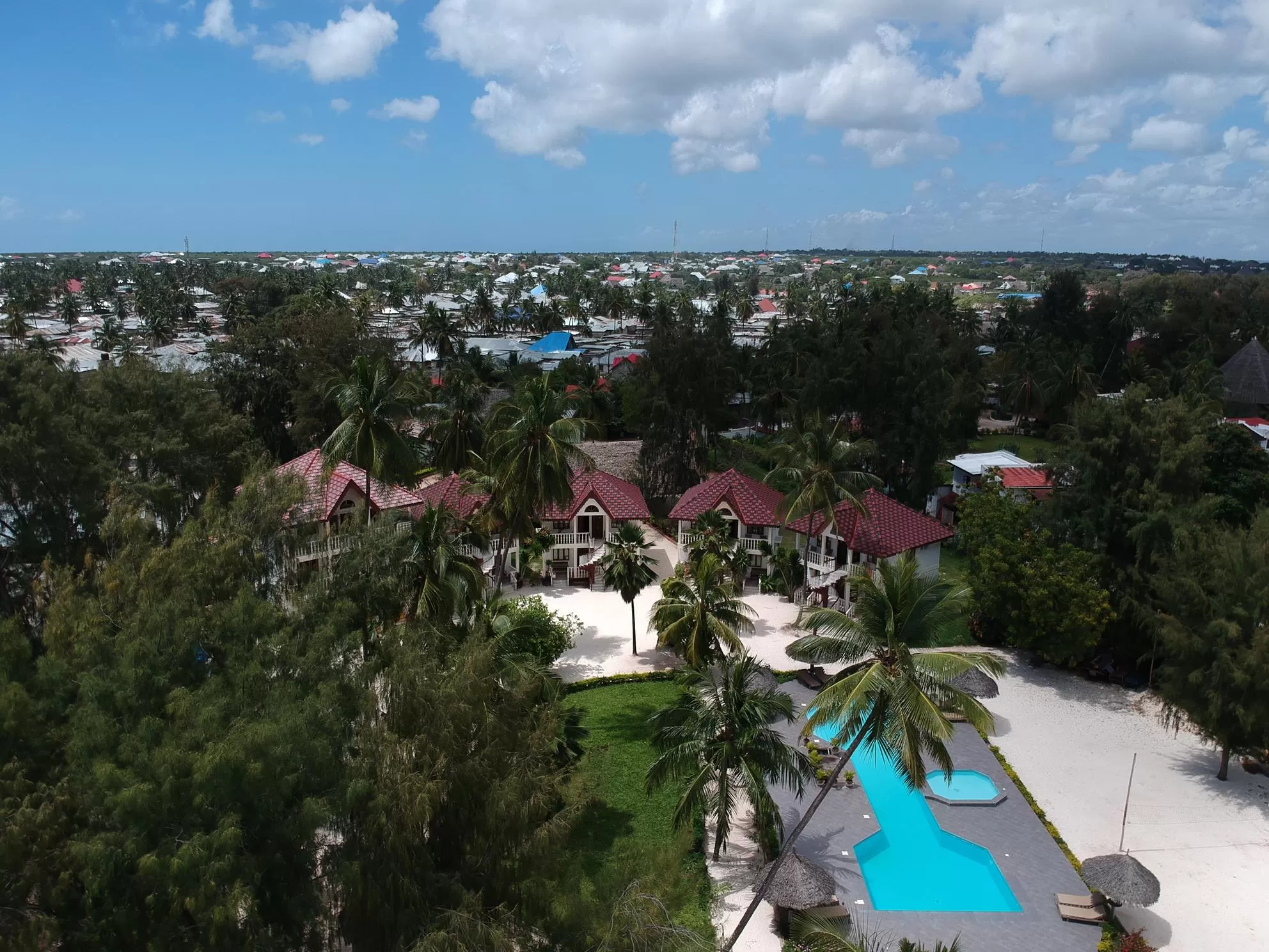 Smiles Beach Hotel is a charming family-run beachfront retreat located in the idyllic village of Nungwi, on the northwestern coast of Zanzibar, Tanzania. Operating since 2001, this intimate hotel features around 16–22 ocean-facing rooms set within lush tropical gardens and spread across 8,200–8,700 sqm of peaceful grounds. Guests wake up to private balconies or patios with stunning views of white sand beaches and crystalline waters, while enjoying on-site amenities such as a seaside pool, playroom for children, free Wi-Fi, and seamless access to snorkelling, diving, and cultural excursions